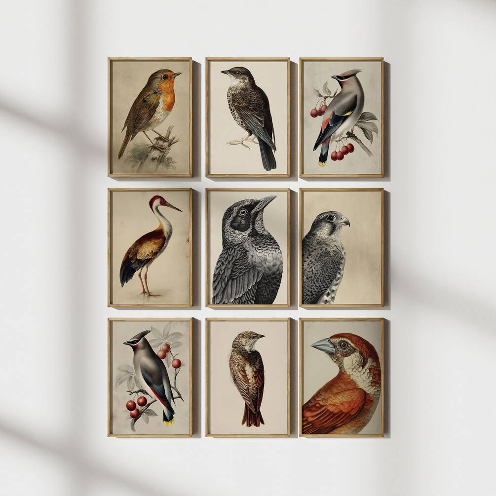 Set of 9 Vintage Bird Prints, Ornithology Wall Art Collection, Antique Bird Illustrations, Nature Gallery Wall | Digital Prints